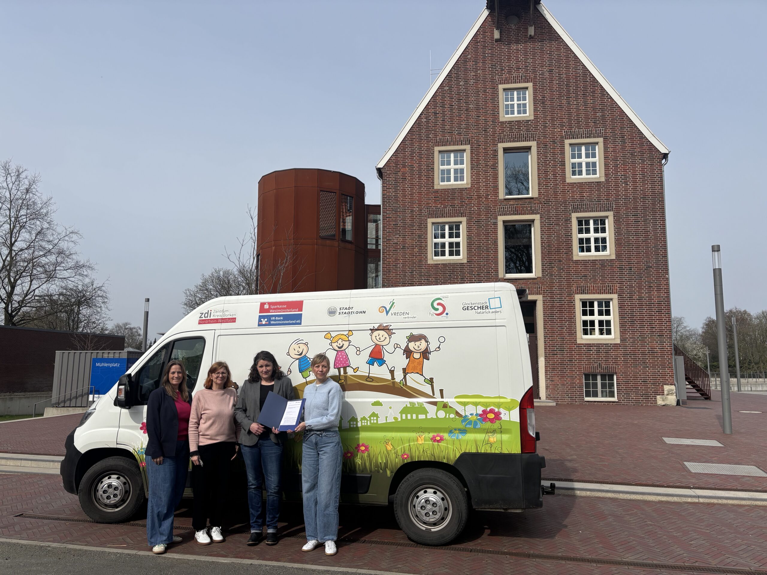 Bildunterschrift ( v. l. n. r.): Freuen sich über die neue Kooperationsvereinbarung: Daniela Daldrup, Veronika Droste, Kerstin Schmitt (alle WFG für den Kreis Borken) sowie Verena Schröder (Jugend- und Familienbildungswerk e. V.)